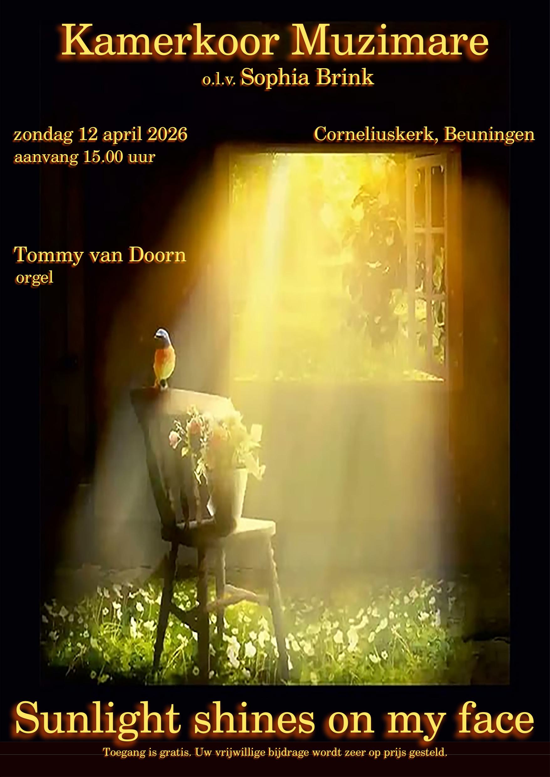 Op de 1e zondag na Pasen geeft Kamerkoor Muzimare een concert waarin muziek en teksten uit verschillende tradities met elkaar verbonden worden. Als de lente de natuur weer tot leven wekt viert men in de kerken de grootste christelijke feesten. Licht overwint de duisternis, leven overwint de dood. Hoop nestelt zich als een vogel diep in ieders ziel. Daar doorheen klinken teksten van Rumi, uit een andere taal en tijd maar dezelfde zoektocht naar het Leven, de Oorsprong, de Ziel.